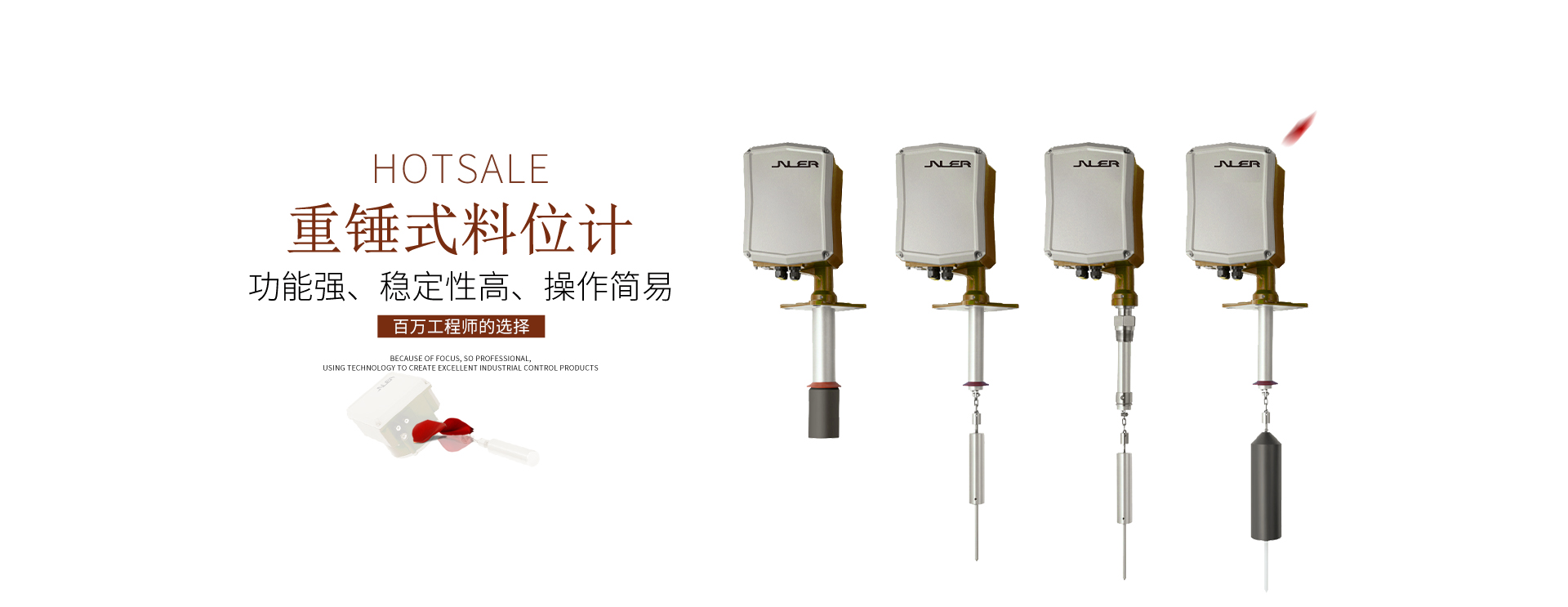 重錘式料位計由傳感器和儀表組成,傳感器采用重錘探測式,各種信號由特制的采集單元取出,無機械觸點、運行可靠。傳感器放置倉頂,重錘由電機通過不銹鋼帶或鋼絲繩牽引吊入在倉內,儀表控制傳感自動定時對料位進行探測,每次測量時重錘從倉頂起始位置開始下降,碰到料面立即返回到倉頂等待下一次測量。儀表通過對重錘下降過程傳感信號的處理可得到倉頂到料面的距離hl,倉高H是由用戶預置的,這樣用倉高H減去hl便可得出料位高度h=H-hl,儀表直接顯示料位高度h。系統采用PLC控制,功能強、穩定性高、操作簡易;特別適用于電力、冶金、