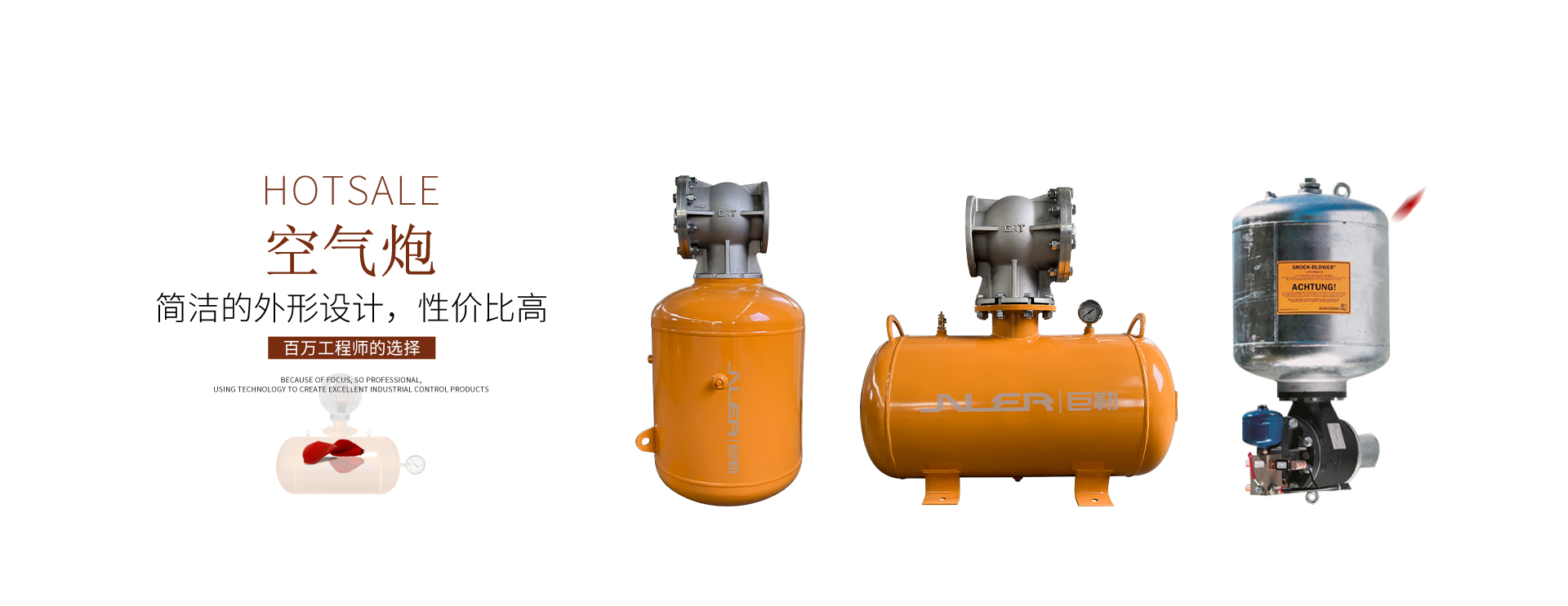 空氣炮由壓縮空氣儲氣罐和一套噴氣組件構成,它能在瞬間釋放高能沖擊力。該空氣炮直接通過噴氣口沖擊物料,破壞架橋,使物料從桶內流出。