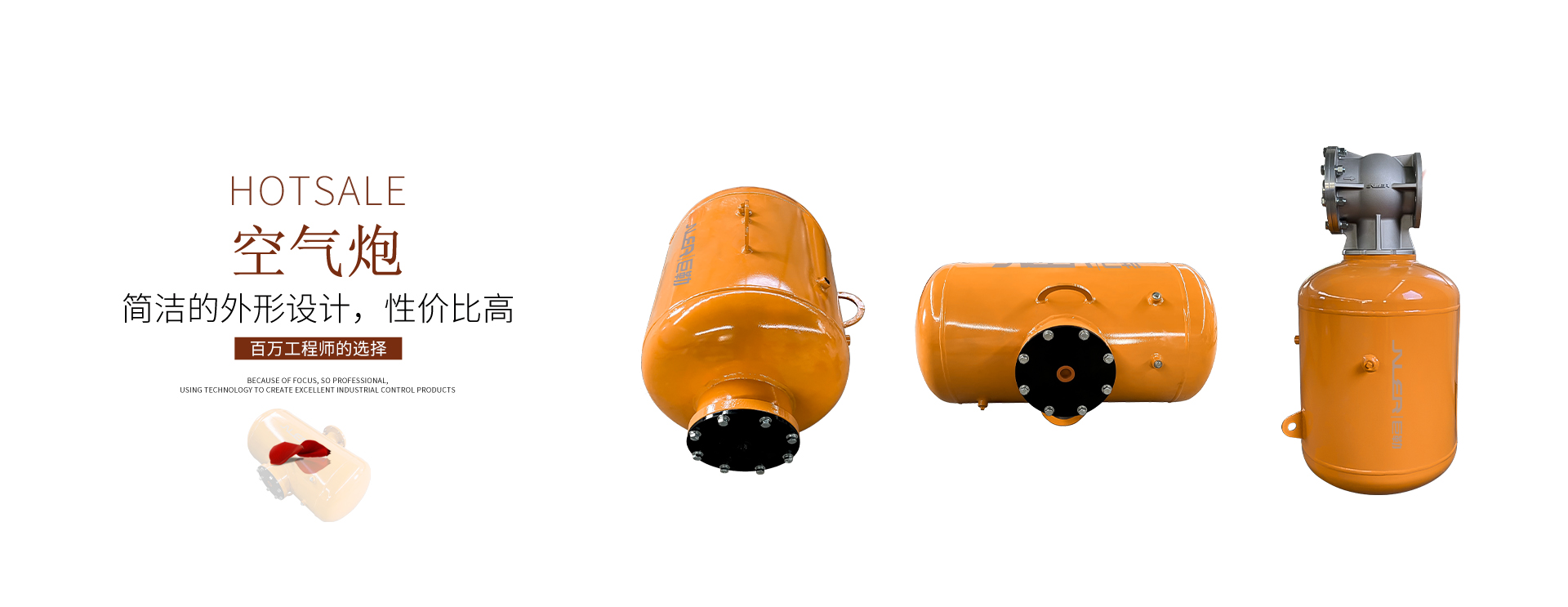 空氣炮由壓縮空氣儲氣罐和一套噴氣組件構成,它能在瞬間釋放高能沖擊力。該空氣炮直接通過噴氣口沖擊物料,破壞架橋,使物料從桶內流出。