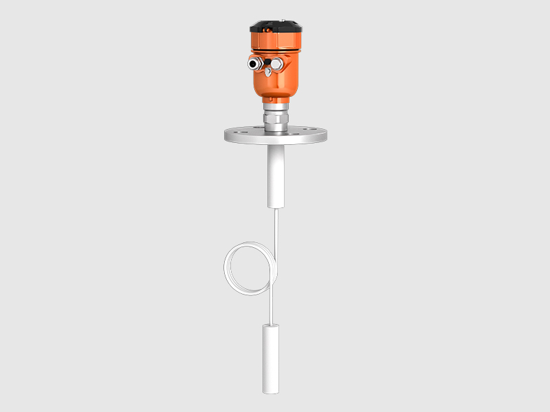 導(dǎo)波雷達(dá)發(fā)出的高頻微波脈沖沿著探測組件(鋼纜或鋼棒)傳播,遇到被測介質(zhì),由于介電常數(shù)突變,引起反射,一部分脈沖能量被反射回來。發(fā)射脈沖與反射脈沖的時(shí)間間隔與被測介質(zhì)的距離成正比。