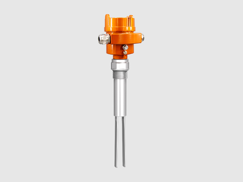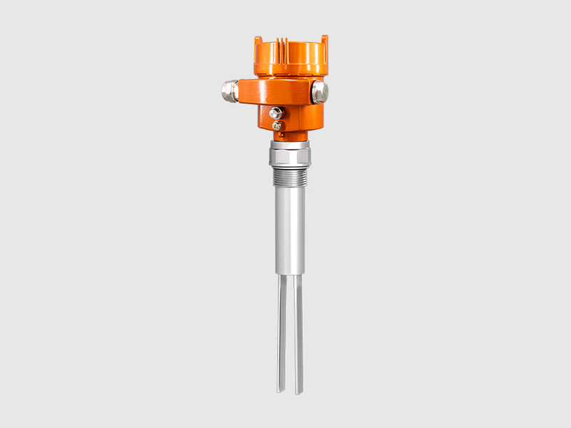 利用壓電晶體以及音叉的固有頻率對音叉棒進行驅動以及信號反饋,使音叉棒產生共振,當有料位接觸音叉棒時,使音叉棒反饋回來的頻率訊號,當電路偵測到此一訊號的頻率降低時轉換成一個接點訊號的輸出。被測物包覆于音叉棒時所產生的阻尼作用而使音叉棒振動頻率降低,并且輸出一開關信號,因此內部并無信號放大電路,可免除因物料性質改變而必須時常調整靈敏度的困擾。當音叉開關用于低報警(或低位控制)用途時,容器內介質向下排放流經音叉,當低于音叉特定位置時,引起固有頻率的變化,這一變化被電子元件檢測,從而切換輸出狀態;當用于高位報警(或高位控制)用途時,容器內的介質上升并與音叉叉體接觸,引起固有頻率變化,切換至輸出狀態。