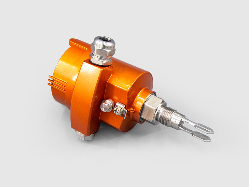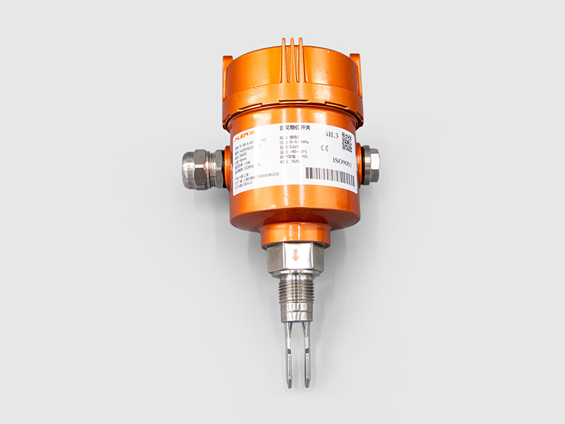 利用壓電晶體以及音叉的固有頻率對音叉棒進行驅動以及信號反饋,使音叉棒產生共振,當有料位接觸音叉棒時,使音叉棒反饋回來的頻率訊號,當電路偵測到此一訊號的頻率降低時轉換成一個接點訊號的輸出。被測物包覆于音叉棒時所產生的阻尼作用而使音叉棒振動頻率降低,并且輸出一開關信號,因此內部并無信號放大電路,可免除因物料性質改變而必須時常調整靈敏度的困擾。當音叉開關用于低報警(或低位控制)用途時,容器內介質向下排放流經音叉,當低于音叉特定位置時,引起固有頻率的變化,這一變化被電子元件檢測,從而切換輸出狀態;當用于高位報警(或高位控制)用途時,容器內的介質上升并與音叉叉體接觸,引起固有頻率變化,切換至輸出狀態。
